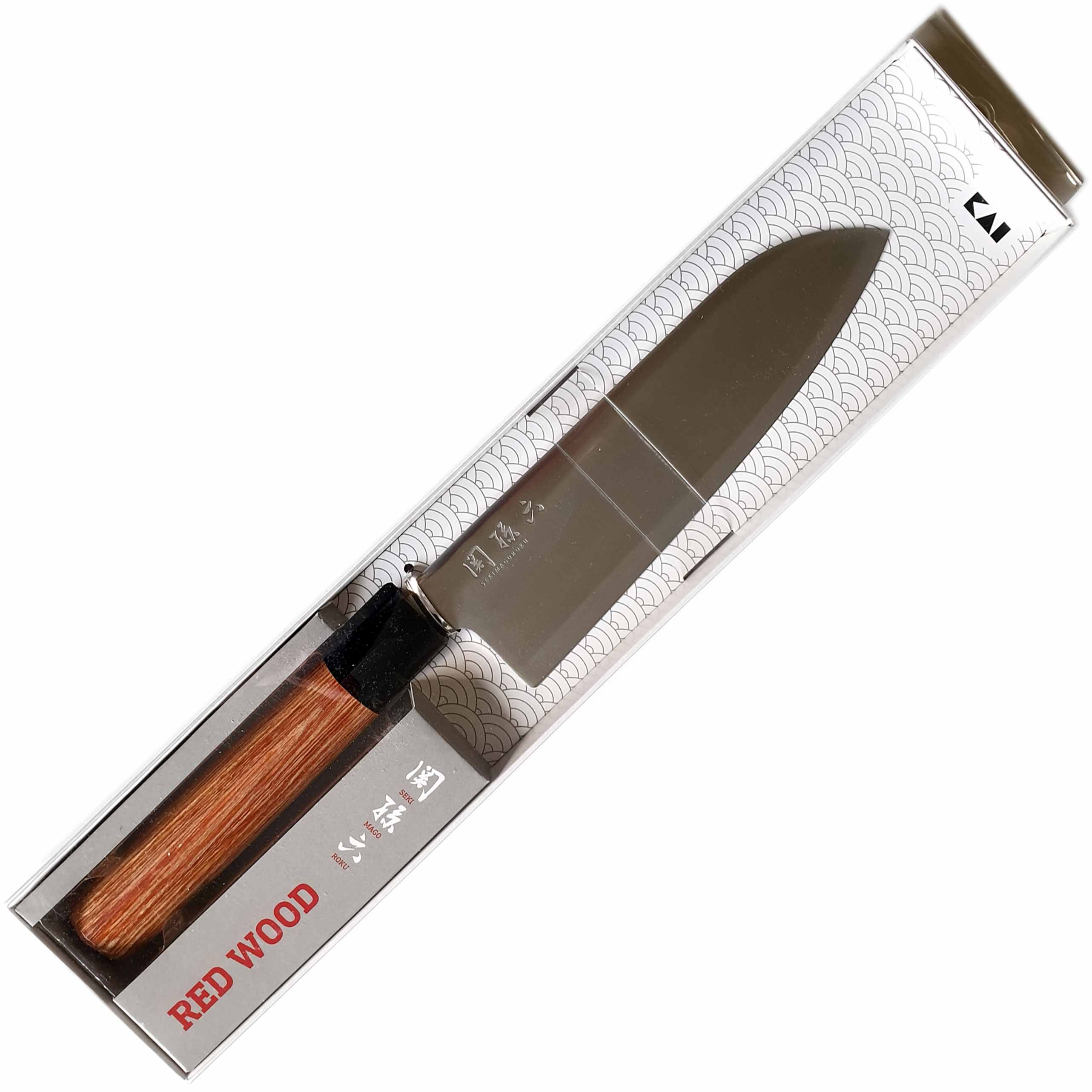 Das KAI Seki Magoroku MGR0170S Santoku Messer 17 cm gehört zur Redwood Serie und ist für präzise Schneidarbeiten in der Küche konzipiert. Die 1K6-Edelstahlklinge (58 HRC), fein poliert und beidseitig geschliffen, bietet zuverlässige Schärfe und ist rostfrei. Mit 2 mm Klingendicke, 4,8 cm Klingenhöhe und 31,3 cm Gesamtlänge ermöglicht es kontrollierte, saubere Schnitte bei Gemüse, Fisch und Fleisch.