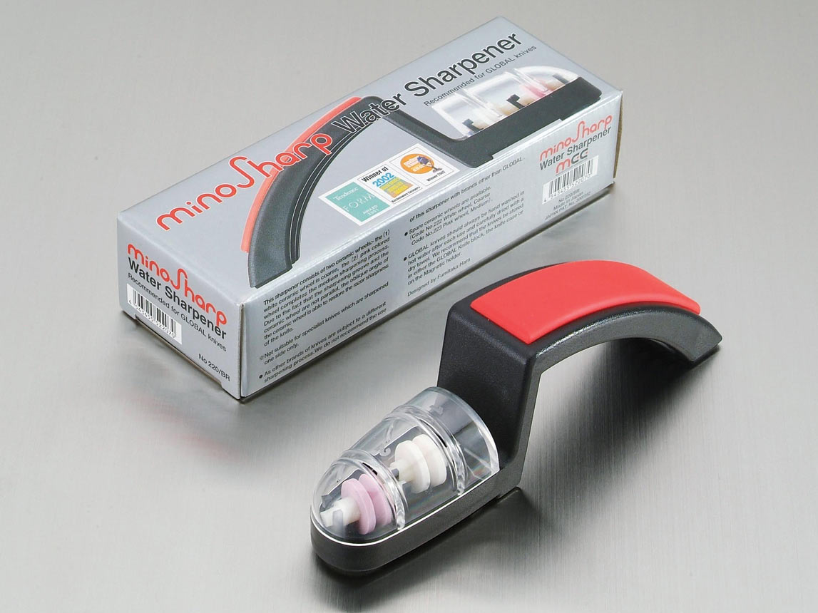 Global G-2220BR Set: G-2 Kochmesser + MinoSharp Schleifer 220-BR