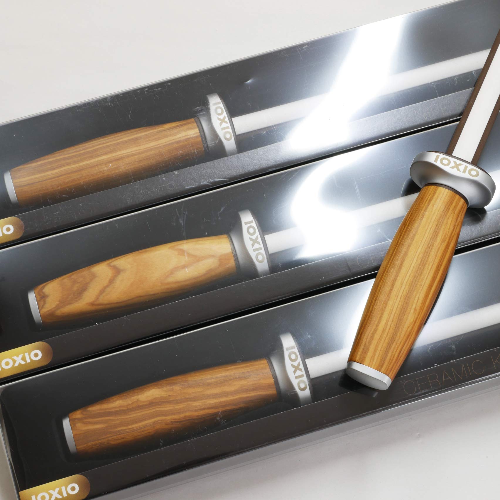 Ioxio Duo Keramik Wetzstab Olivenholzgriff Körnung 800/3000