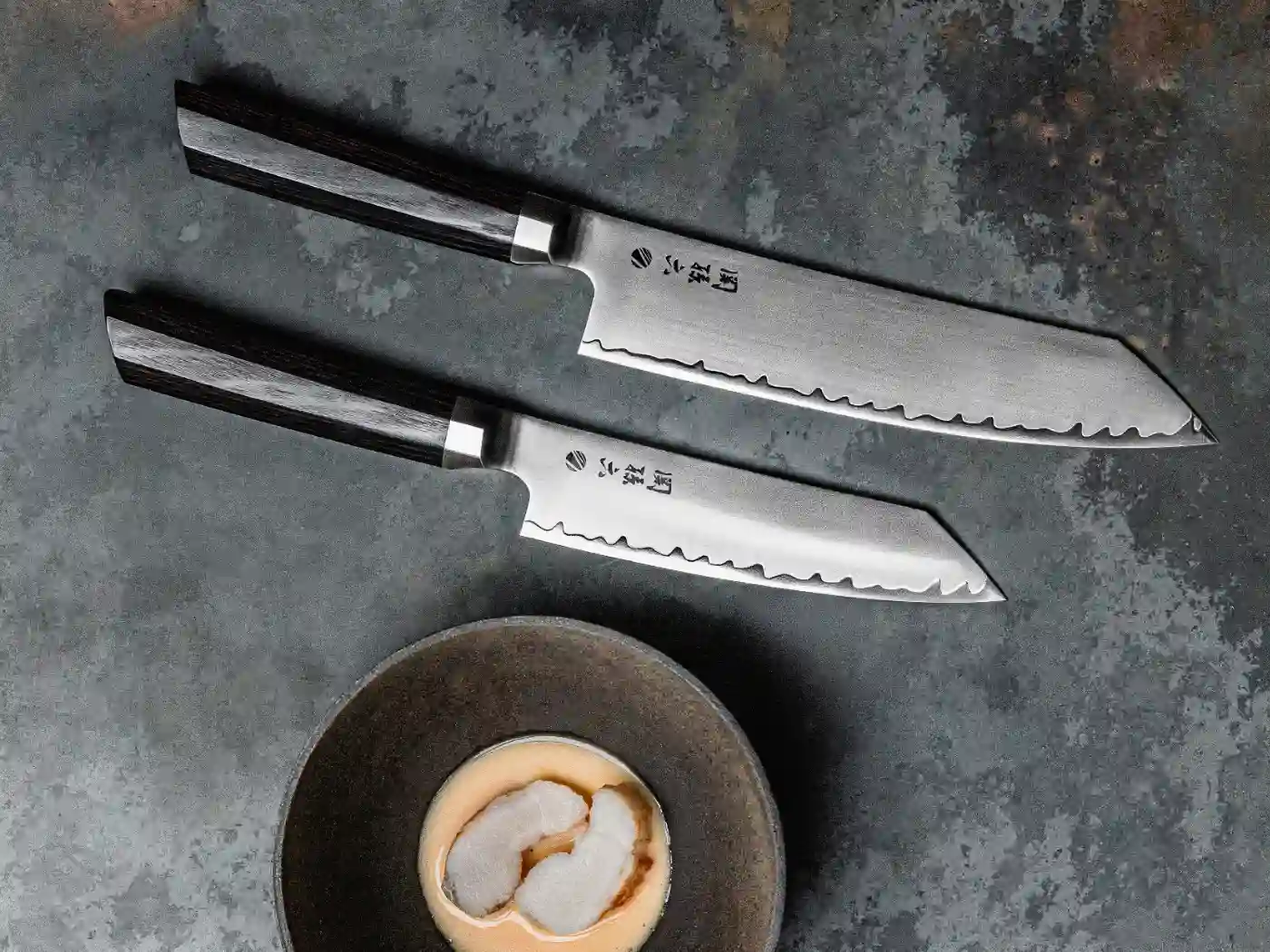 Das KAI Seki Magoroku Kaname AE-5502 Kiritsuke 19,5 cm ist ein beidseitig geschliffenes Kochmesser der Serie Seki Magoroku Kaname. Die 19,5 cm lange und 4,3 cm hohe Klinge besteht aus dreilagigem VGXeos-Stahl und erreicht eine Härte von 61 HRC. Die geschmiedete Klinge mit 1,8 mm Rückenstärke bietet gute Schneidfreudigkeit und Formstabilität. Gefertigt in Japan, entspricht das Messer den Anforderungen an präzises Arbeiten in der Küche.