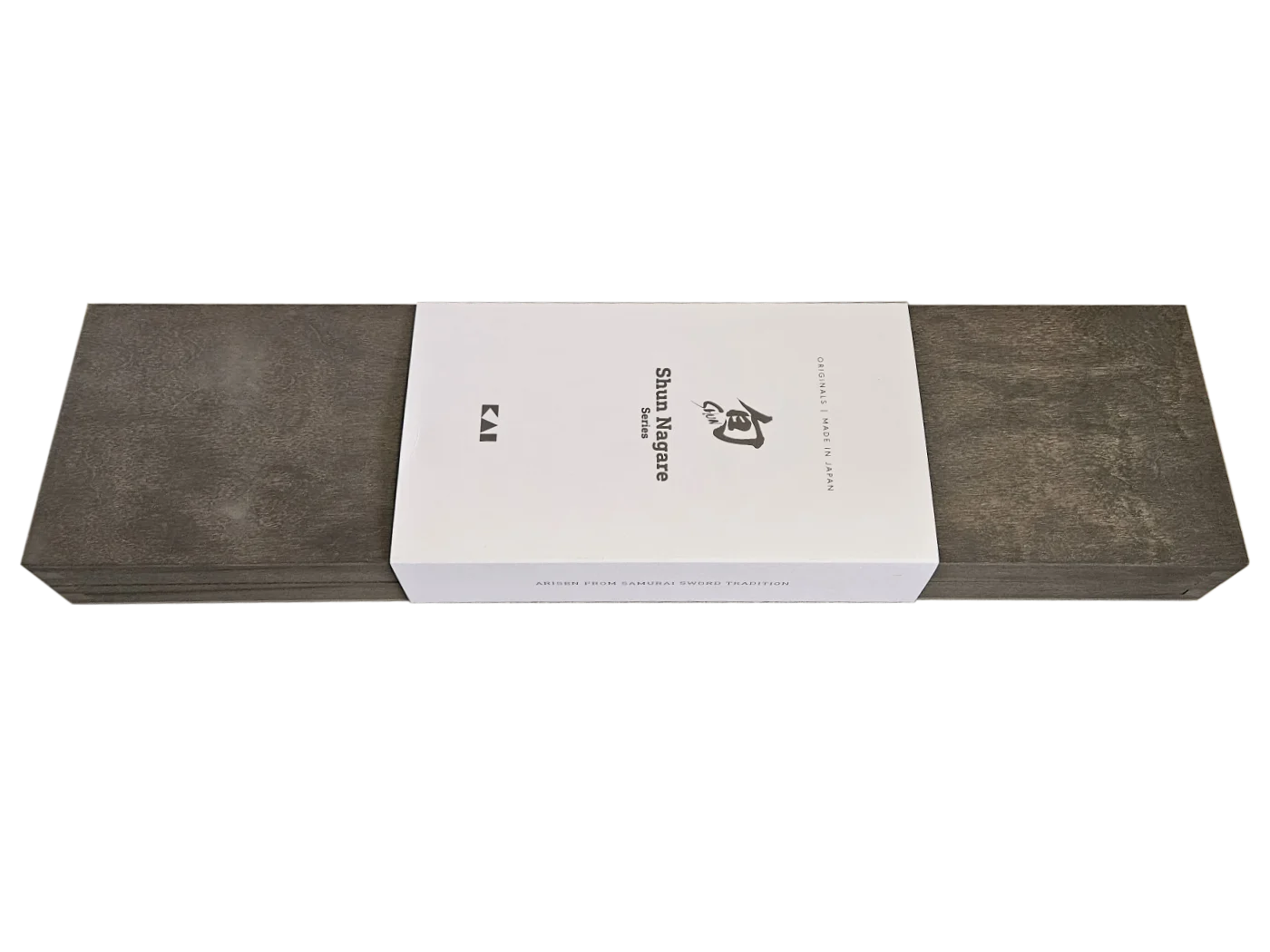 Der symmetrische Griff aus laminiertem Pakka-Holz misst 12 cm und ermöglicht eine sichere Handhabung für Links- und Rechtshänder. Mit 210 g bietet das Messer eine Balance zwischen Führung und Schnittkraft. Das Klingenprofil unterstützt Schub- und Wiegeschnitt. Klingenhöhe 4,5 cm und Rückenstärke 2,5 mm fördern kontrolliertes Arbeiten. Messerform: Santoku; Schliff: beidseitig; Serie: KAI Shun Nagare; Setzuordnung: Kochmesser. Klingenstahl: 72 Lagen Damaszener Stahl. Herkunft: Japan.