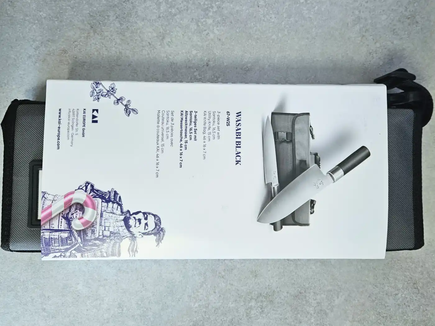 Das KAI Wasabi 67-W25 Set umfasst zwei Messer der Serie KAI Wasabi Black und eine Messertasche. Enthalten sind ein Santoku mit 16,5 cm Klingenlänge sowie ein Allzweckmesser mit 15 cm Klinge. Die kompakte KAI Messertasche (46 x 16 x 7 cm) bietet sicheren Transport und Aufbewahrung. Das Set ist auf den täglichen Einsatz in Küche und unterwegs ausgelegt.