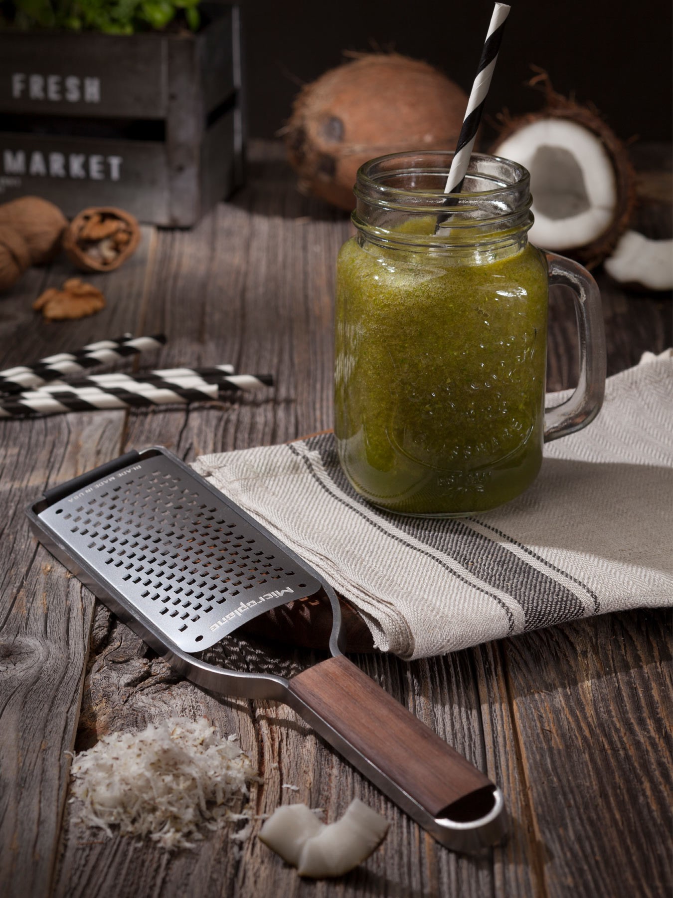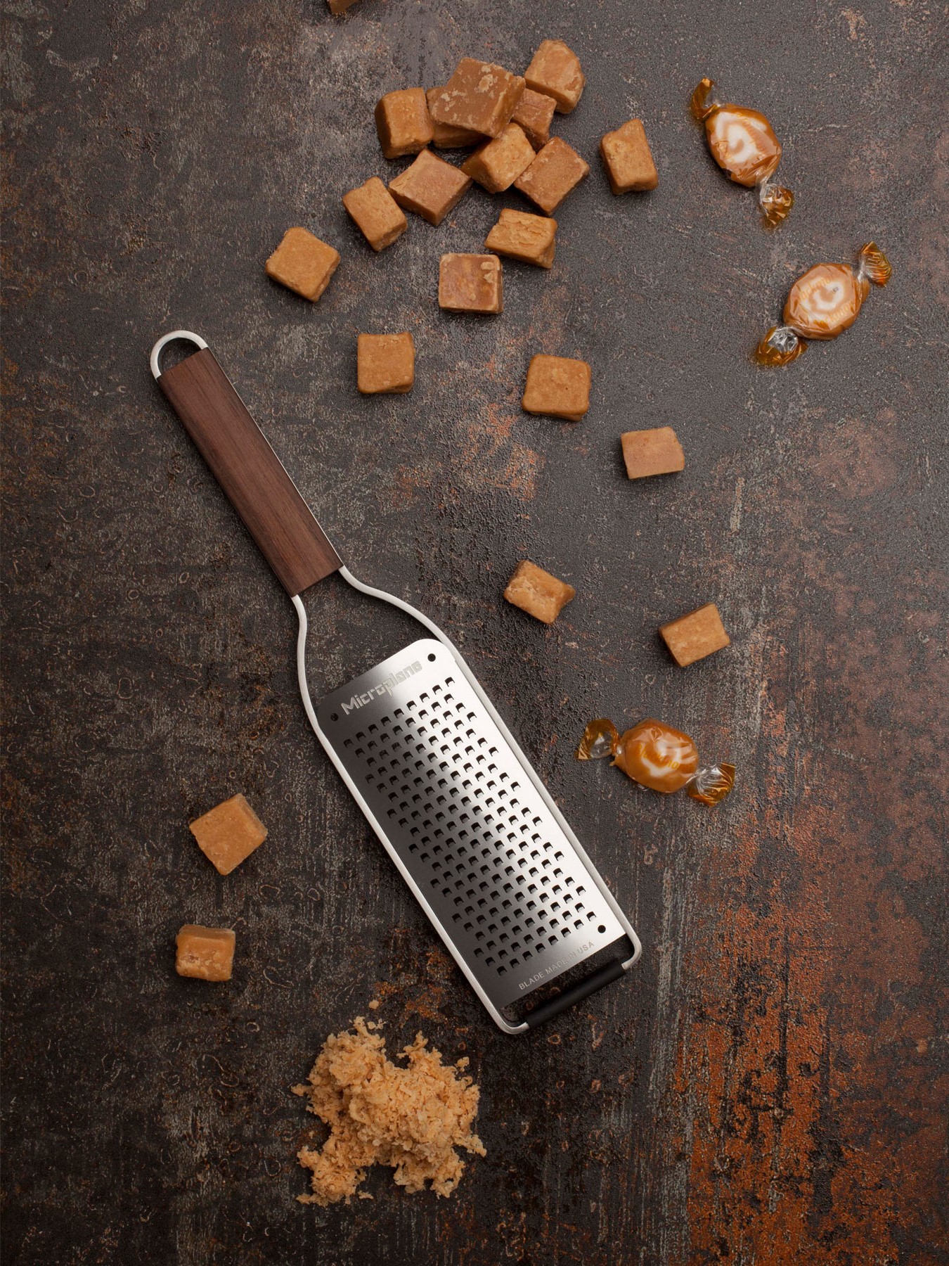 Die Reiben von Microplane Masterhaben einen eleganten Walnuss Holzgriff, einen robusten Edelstahlrahmen und photo-geäzte Klingen aus Edelstahl.