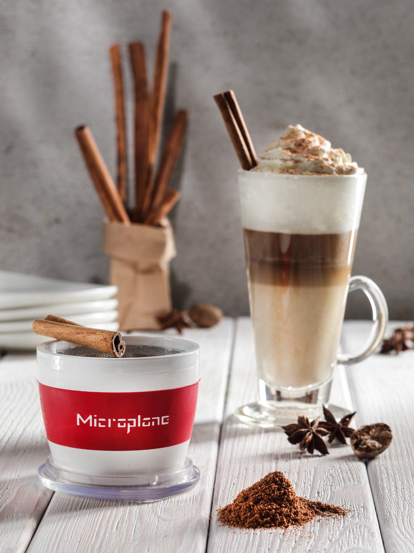 Die CUP Reiben von Microplane Specialty überzeugen mit modernem Design in Tassenform und hoher Funktionalität. Sie verfeinern durch sehr fein geriebenes Reibgut Getränke, Gebäck und Speisen. Durch die zylindrische Form können Sie die Lebensmittel direkt über dem Getränk oder Gebäck reiben und gezielt dosieren. Die Tassenreibe hat einen transparenten Deckel, der als Klingenschutz sowie umgedreht als Auffangbehälter genutzt werden kann. Dank der farblichen soft touch Banderole liegt die Reibe gut und sicher in der Hand und sorgt damit für einen optimalen Komfort.