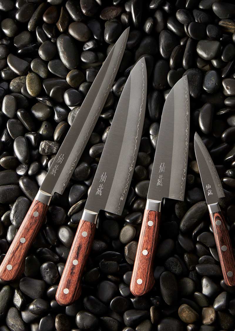In Sachen Design- und Verarbeitungsqualität spielen die hochwertigen und preiswerten Messer der Senzo Clad Serie ganz vorne mit. Profis und Experten sind gleichermaßen von der Verarbeitung der Klinge und des Griffs begeistert. Die Klinge ist wie bei allen Suncraft Messern sehr fein und flach ausgeschliffen und garantiert so eine hohe Schneidleistung. Die "Western Style knifes" haben zwei Griffschalen aus Pakkaholz, welche mit jeweils drei Alunieten befestigt sind. Das braun-rötliche Pakkaholz ist ein feines 70% Birkenholz und 30% Harz-Gemisch. Die sehr sauber verarbeiteten Griffschalen sind daher feuchtigkeitsresistent und sehr langlebig. Die Klinge besteht aus dem hochwertigen japanischen AUS-10 Stahl. Der rostfreie Dreilagenstahl hat eine Rockwellhärte von 59+-1 HRC. 100% Made in Japan.
