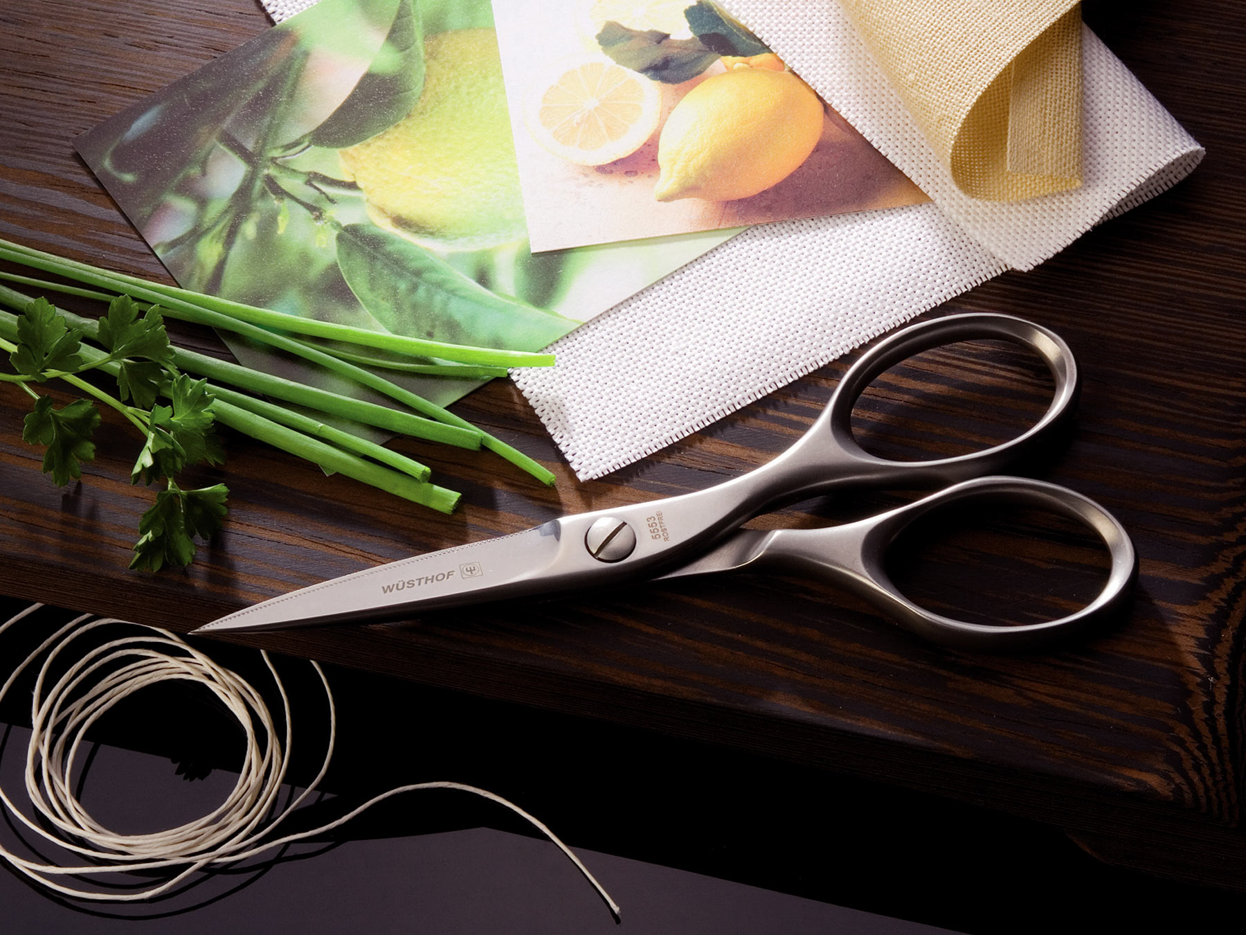Die rostfreie Küchenschere von Wüsthof eignet sich hervorragend zum Schneiden von Kräutern, Schnur, Papier und ähnlichen Produkten. Sie ist aus Edelstahl geschmiedet, mattiert und liegt durch die Micro-Zahnung perfekt in der Hand.